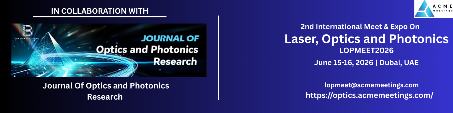 The 2nd International Meet & Expo on Laser, Optics, and Photonics (LOPMEET2026) will take place on June 15–16, 2026, in Dubai, UAE. LOPMEET2026 provides a premier international platform for researchers, academicians, industry experts, and innovators to present and discuss the latest breakthroughs, technologies, and applications in Laser Science, Optics, and Photonics.